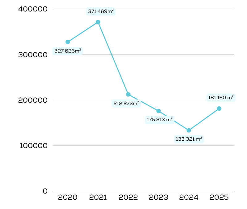 According to recent analyses by JLL, by 2025, leased space will reach 181,160 m², an increase of 36% compared to 2024.